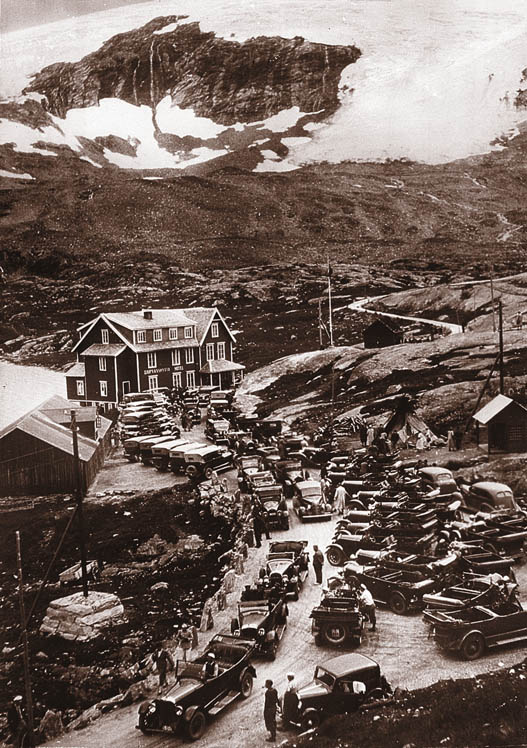 Den 5 km lange vegen frå Djupvasshytta til fjelltoppen Dalsnibba har 11 hårnålsvingar og vart ferdigstilt i 1939. Den kom som resultat av ein stor auke i turisttrafikken fram mot 2. verdenskrig. Det var eit lokalt eigd selskap, Geiranger Skysslag AS, som stod bak satsinga. Faktisk vart vegen opp til dette utsiktspunktet over Geiranger bygd heile 17 år før bygda fekk heilårsveg. Nibbevegen vert regna som eitt av dei fremste symbola på turisttrafikken i Geiranger. Frå platået på toppen har ein kanskje verdas høgaste fjordutsikt tilgjengelig med bil. Dette gjer at Dalsnibba årleg er besøkt av nærare 200 000 personar. Ein soloppgang eller solnedgang sett fra toppen er ei naturoppleving ein aldri gløymer. Likeså er den spektakulære stjernehimmelen ei mørk augustnatt vel verdt turen opp! I 2005 stod eit nytt servicebygg klart på toppen, her finn ein souvenirbutikk og toaletter, samt mogelegheit til å kjøpe ein kopp kaffi eller lignande. Servicebygget har ein spesiell arkitektur som speglar høgfjellsområdet rundt. Vegen til toppen er åpen kvart år frå slutten av mai til slutten av september. Prisen for å køyre opp i 2011 er som følgjer: BIL/MC: NOK 100,- Buss: NOK 990,- Bomvegen har automatisk bomsystem der ein kan betale med kredittkort eller mynt. I tillegg er stasjonen betjent dei mest hektiske periodane. Velkomen til Dalsnibba gjennom heile sommaren! ![]() Djupvasshytta ein sommardag på 1930-talet. Då som no fraktar Geiranger Skysslag cruisebåtpassasjerar til Djupvasshytta og frå 1939 også til Dalsnibba. |