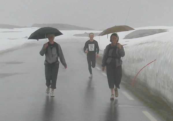 Regnet/snøen såg ikkje ut til å verke inn på humøret!