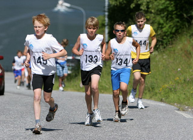 Fleire deltakarar i Miniton. Frå venstre: Rune Hole (Sunnylven IL), Robert Sørås (Stordal IL), Trond Marius Vad (Valldal IL) og Ole Kristian Kindsbekken (Tingvoll IL).![]() Foto: Knut Arild Maråk |